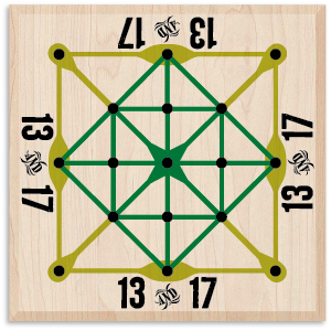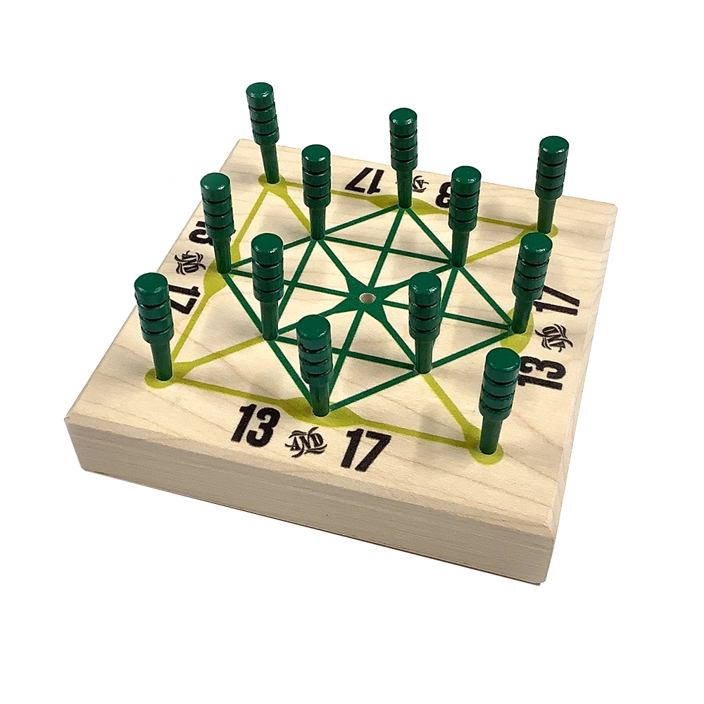 Two of William Breitenbach's most celebrated puzzles of the late 1800s, both played on the same board. The games, which he simply called "The Great 13” and “The Great 17,” have been published only a few times over the past 125 years. These solitaire jump & capture puzzles provide unique challenges that have intrigued puzzle fans for generations. Made in USA for 1 player age 8+.