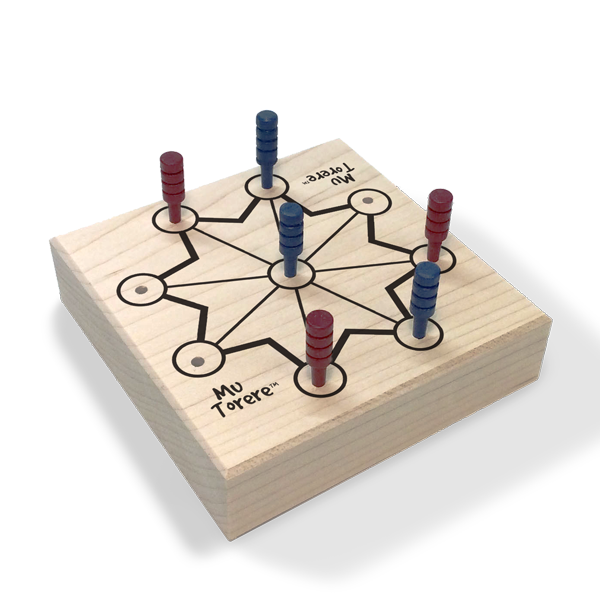 The game of MuTorere originated among the Maori tribes of New Zealand (though similar games are found elsewhere). No one knows how old the game really is, but when European colonists first recorded it in the 1850s, it had been around for generations. When the game was described by the famous game historian R.C. Bell in 1969, it found a new audience and became popular once again. It's a simple looking puzzle game for two, each player attempting to trap their opponent one step at a time. MuTorere is a great alternative to tic-tac-toe to introduce players to the genre of two-player puzzle games. Made in USA for 2 players age 8+.