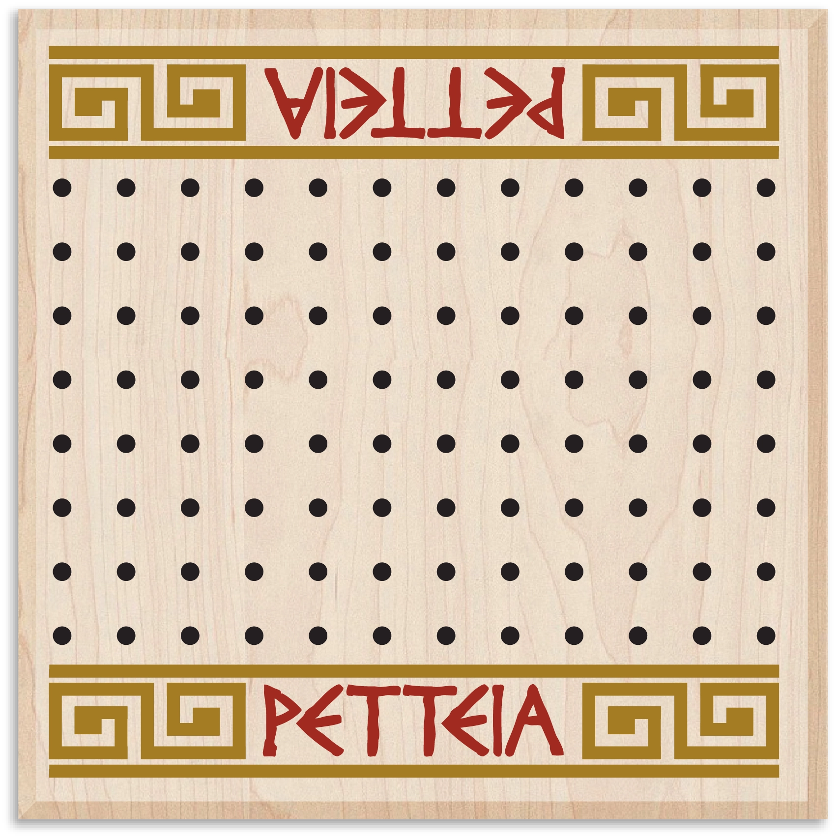 Petteia is a two-player war game, with each side equal in both forces and objectives, One of the earliest examples of move-and-capture games, his ancient Greek board game is thought to be the inspiration for the Roman game Latrunculi, presumably predating the latter by several centuries. Ancient game boards thought to be for Petteia are found in different sizes, but equally playable. The 8x8 is most common. Two versions of the game are included in the box. Made in the USA for 2 players age 8+.
